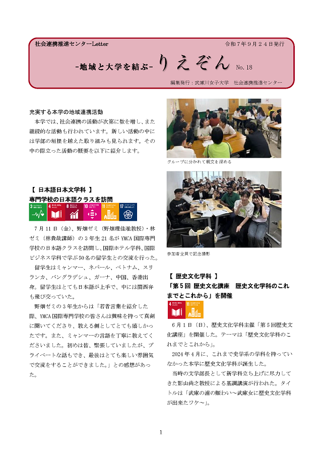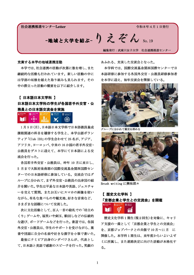 「-地域と大学を結ぶ-りえぞん」は、社会連携推進センターのWeb広報誌です。 学生・教職員の地域や他大学との連携活動など、さまざまな情報を掲載しています。